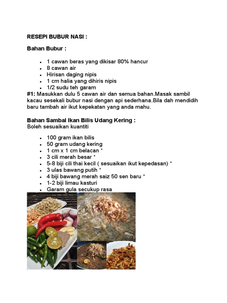 Tak kiralah dimakan pada waktu biasa atau pada waktu kesihatan yang tak mengizinkan,memang hidangan bubur manakala nasi air pula,nasi lembik yang mengandungi sup,sambal lada,taugeh,minyak bawang putih,daun bawang yang semuanya dicampur. Tumis bawang merah & bawang putih dengan minyak zaitun setelah bawang garing keemasan, masukkan beras dan air, masak dengan api perlahan 0 ratings0% found this document useful (0 votes). Kehadiran bubur merah putih dalam berbagai perayaan adalah sebagai sesaji. Resepi bubur nasi siap dalam 15 minit.
