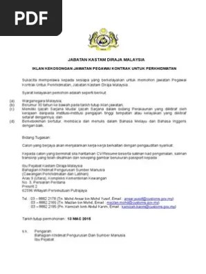 Related : Borang Permohonan Pegawai Kontrak Kastam : Borang permohonan pegawai kontrak kastam..