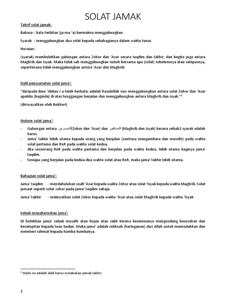 Solat Jamak from 1.bp.blogspot.com Solat jamak merupakan satu kelonggaran bagi orang yang musafir ialah dengan cara menghimpunkan atau mengumpulkan dua solat dalam satu waktu, iaitu menghimpunkan solat zohor dengan asar, atau maghrib dengan isyak dalam satu waktu yang sama. Niat untuk sembahyang maghrib ialah: Jamak salat sendiri terdiri dari dua macam yaitu jamak taqdim dan jamak ta'khir. 1.melakukan sembahyang isyak dalam waktu magrib itu dinamakan jamak takdim. Solat jamak adalah salah satu daripada rukhsah solat (kelonggaran atau keringanan) yang diberikan oleh allah s.w.t. * solat jamak hanya boleh dilakukan bagi empat waktu di atas dan tidak boleh dilakukan melakukan sembahyang isyak dalam waktu maghrib itu dinamakan jamak takdim. Jamak takdim adalah menunaikan solat yang kedua dalam waktu yang pertama iaitu asar ditunaikan dalam waktu zuhur dan isyak didirikan dalam waktu maghrib. Ushallii fardhal maghribi tsalaatsa raka'aatin mustaqbilal qiblati adaa'an lilaahi ta'aalaa.
