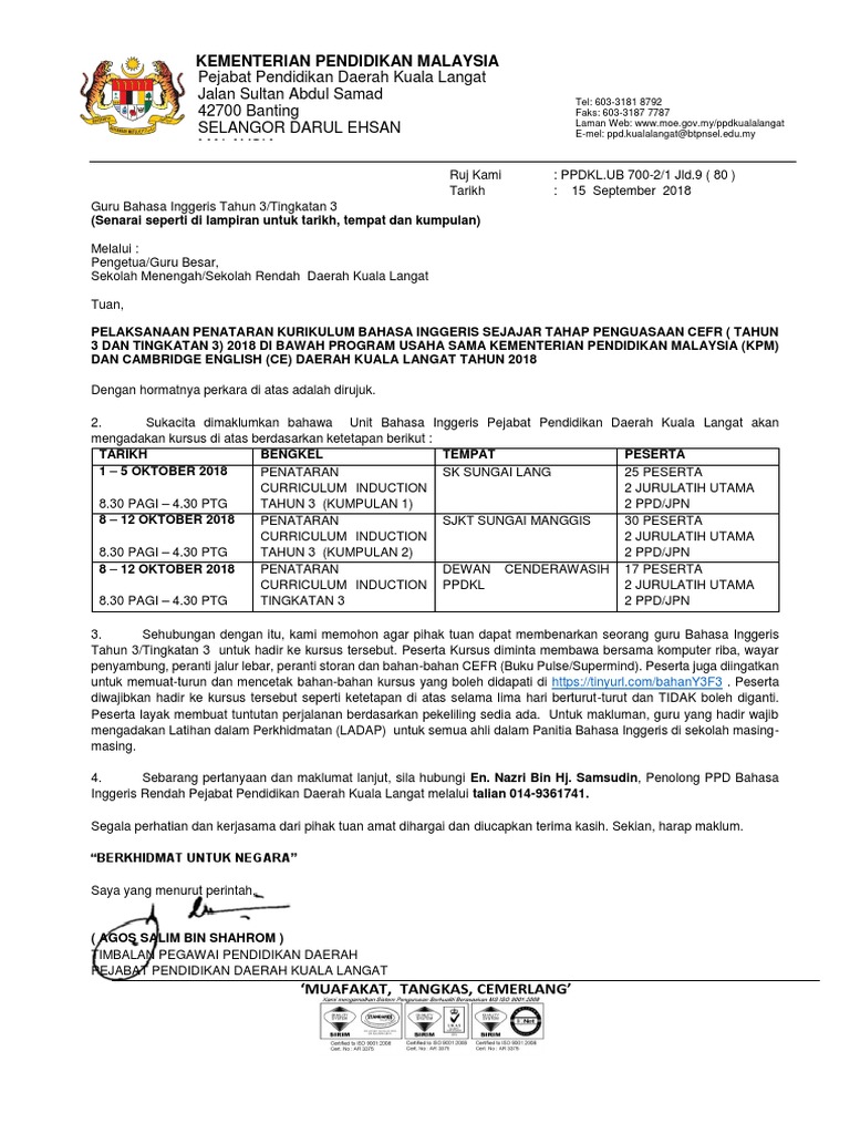 Pejabat pendidikan daerah hulu langat saujana impian, km 22 cheras, 43000 kajang, selangor darul ehsan. Terdapat dua kaum orang asli di daerah kuala langat iaitu kaum mah meri, kaum yang tinggal di pesisiran pantai. Pejabat pelajaran daerah kuala langat (ppdkl) berpisah dengan pejabat pelajaran daerah sepang (ppds) pada 1 februari 2002. Pejabat daerah/tanah kuala langat, persiaran sultan abdul aziz shah,kota seri langat, sungai sedu, 42700 banting, selangor tel : 18, seksyen 8, jalan rasathurai, 44000 kuala kubu bharu, selangor darul ehsan. Kompleks islam daerah hulu langat, persiaran kemajuan, seksyen 16, 43650 bandar baru bangi. Kissclipart offers about 3 pejabat pendidikan daerah hulu langat transparent png images & cliparts. Kuala langat adalah salah satu dari sembilan daerah di selangor, malaysia. Lokasi baru pejabat pendidikan daerah padang terap yang mula diduduki pada pertengahan tahun 2011 ini terletak bersebelahan smk kuala nerang berdepan. Pejabat agama islam daerah petaling,tingkat 1, menara utara,bangunan sultan idris shah, persiaran masjid, 40676 shah alam , selangor darul ehsan. Informasi terkini daripada pejabat mara daerah kuala langat. 30, 32 & 34, jalan cemerlang 2, pusat perdagangan banting, 42700 banting, selangor darul ehsan. 035/1 @ 2016 hak cipta ppd kuala langat.